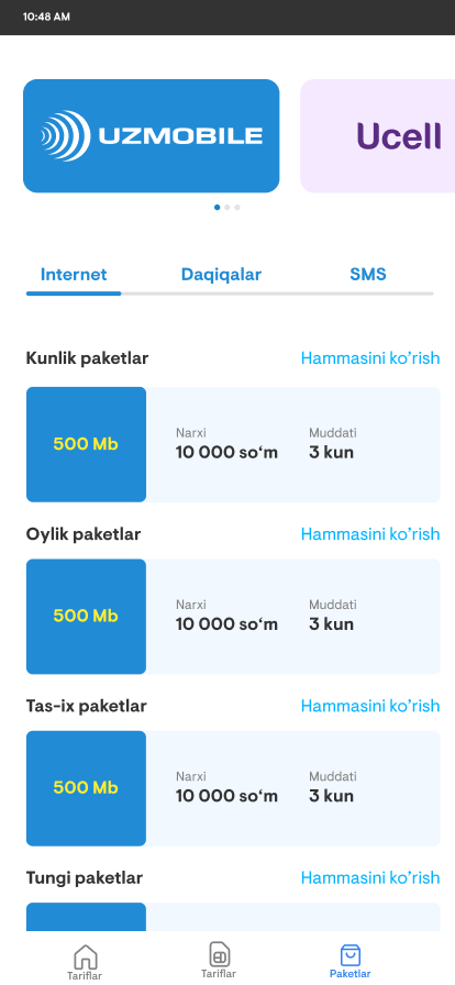 Mobile app helps to use four companies service that are Uzmobile, Ucell, Beeline and Mobiuz. Install app