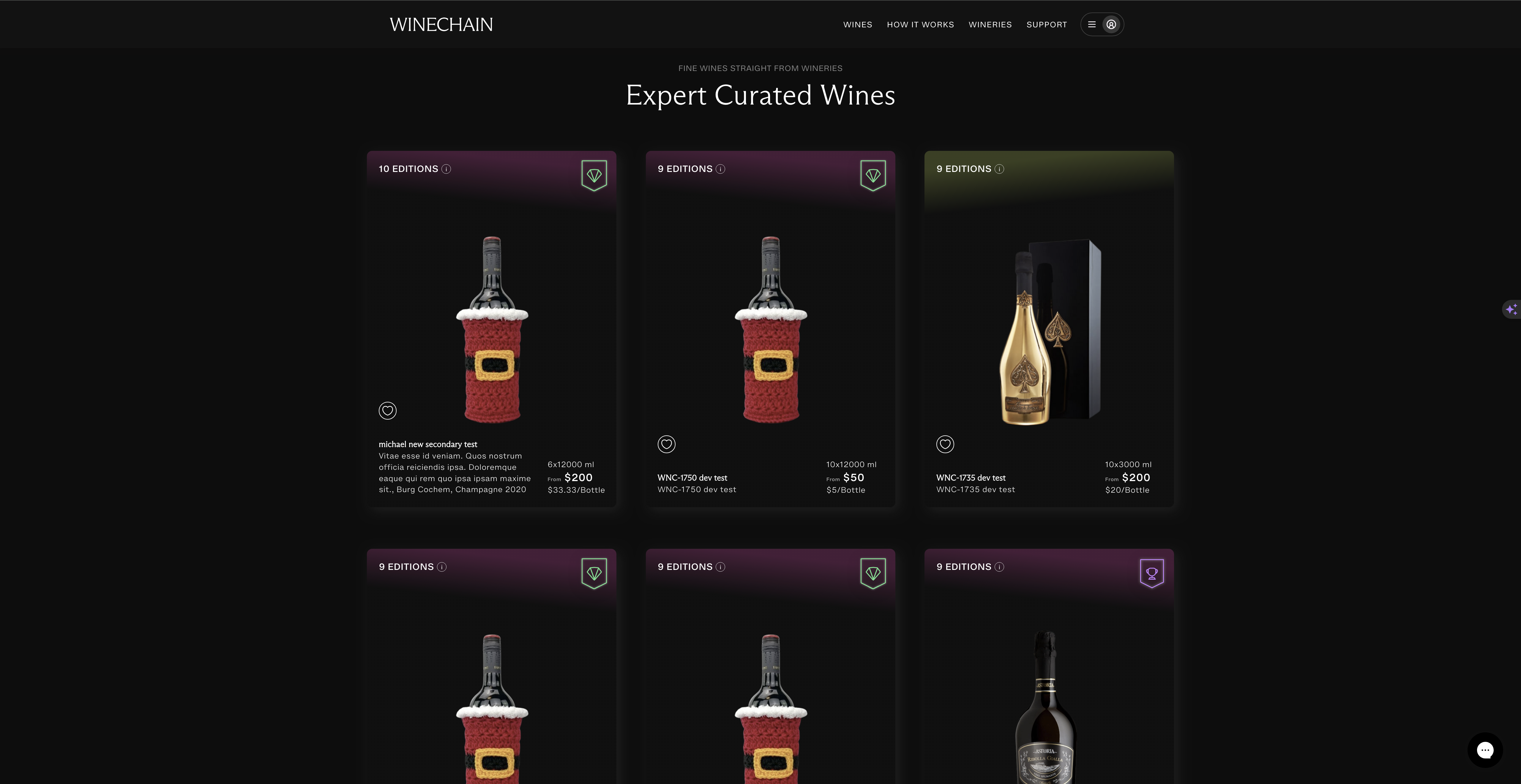 WineChain brings you the world's finest wines directly from wineries. The wines in your WineChain cellar can be traded with other collectors worldwide or shipped anywhere you want. Your wines hold a higher value as they are stored in a secure storage facility until they are shipped, while their digital twins are traded worldwide. Meaning the bottles move only from winery to our storage and then directly to the customer requesting them to be shipped. See application